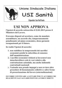 Segue, più imbarazzata (ma più avanti vedremo il perché), la dissociazione dell’USI Sanità (il sindacato maggioritario al San Raffaele):